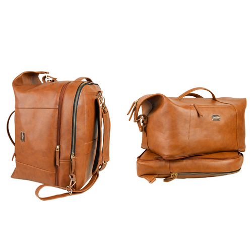 for longer trips. Can be carried as a duffle (with top handle) or a backpack (with detachable shoulder straps)