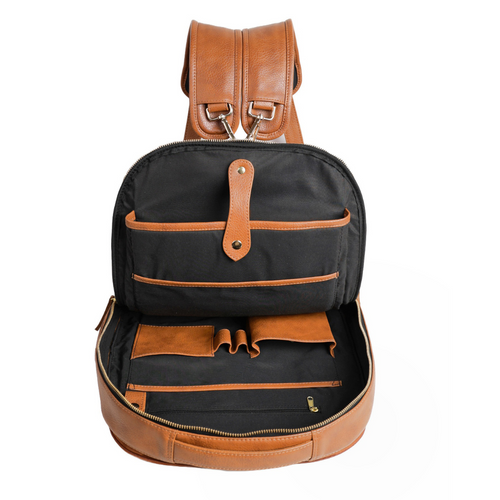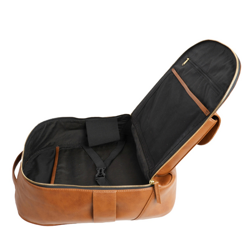 c. Base bag has a top and a side handle to carry it the way you want as a sleeve or as a backpack