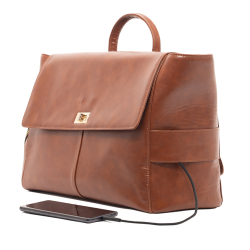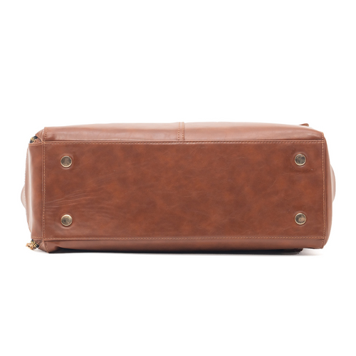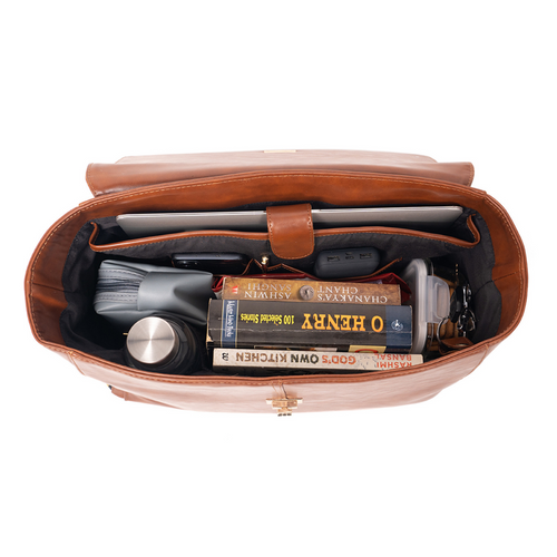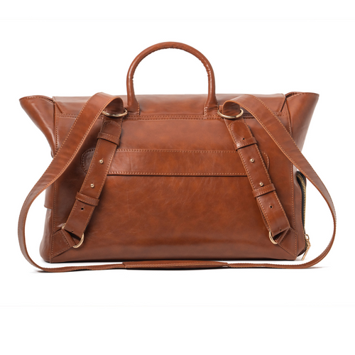 The bag is adorned with antique finish hardware, adding a touch of vintage charm and sophistication to its overall design. The hardware, including zippers, buckles, and clasps, is carefully crafted to replicate the appearance of aged metal, giving the bag a unique and distinctive character.
