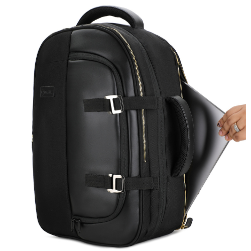 The fully open 180° compartment with buckle strap designed for clothes and more