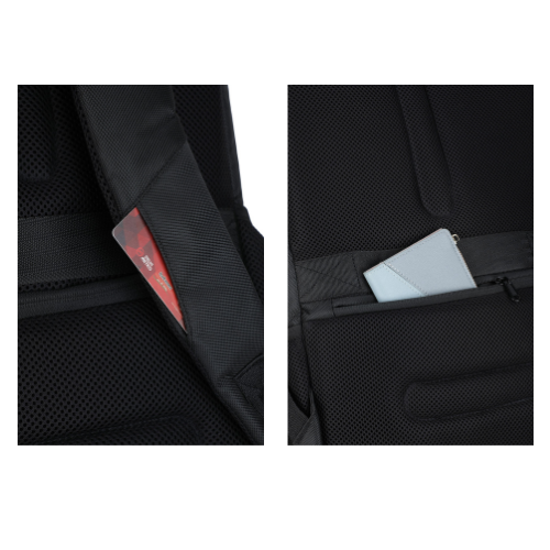 Slip-in card holder in strap. And concealed zipped pocket at back for quick access to travel documents.