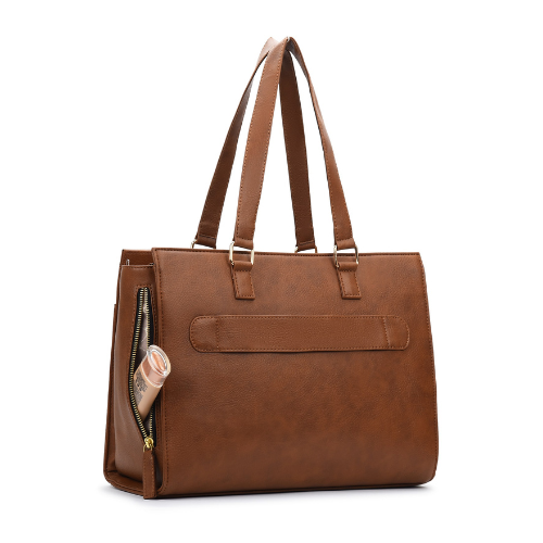 The bag is adorned with antique finish hardware, adding a touch of vintage charm and sophistication to its overall design. The hardware, including zippers, buckles, and clasps, is carefully crafted to replicate the appearance of aged metal, giving the bag a unique and distinctive character.