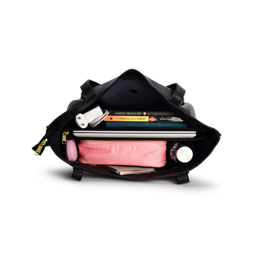 It is spacious enough to hold your laptop and accessories. It also features dedicated pockets to keep things organized.