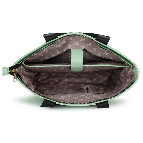 The bag is adorned with antique finish hardware, adding a touch of vintage charm and sophistication to its overall design. The hardware, including zippers, buckles, and clasps, is carefully crafted to replicate the appearance of aged metal, giving the bag a unique and distinctive character.