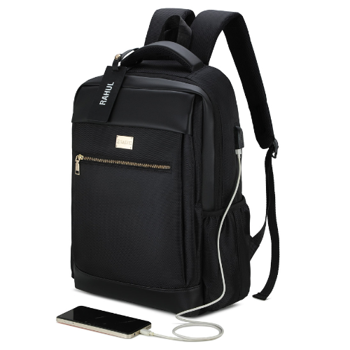 Detachable personalized name tag and Organizer Pouch for chargers and cables.